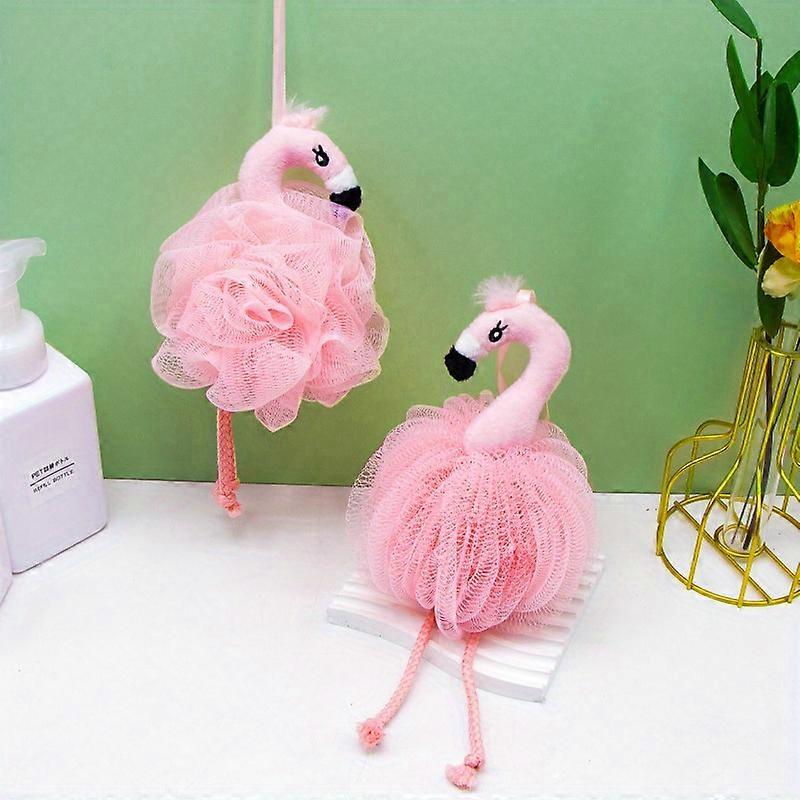 Flamingo Bath ball Sponge - Soft Exfoliating Heart Design, Pink Cute Foaming Ball for Gentle Cleansing, Relaxing Skincare Shower