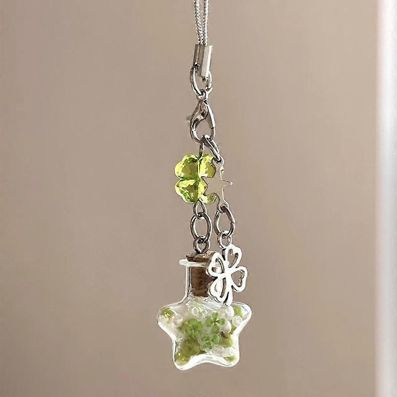 Lucky Four Leaf Clover Wishing Bottle Beaded Phone Pendant Keyring Strap Fashionable Charm Lanyard Ornament