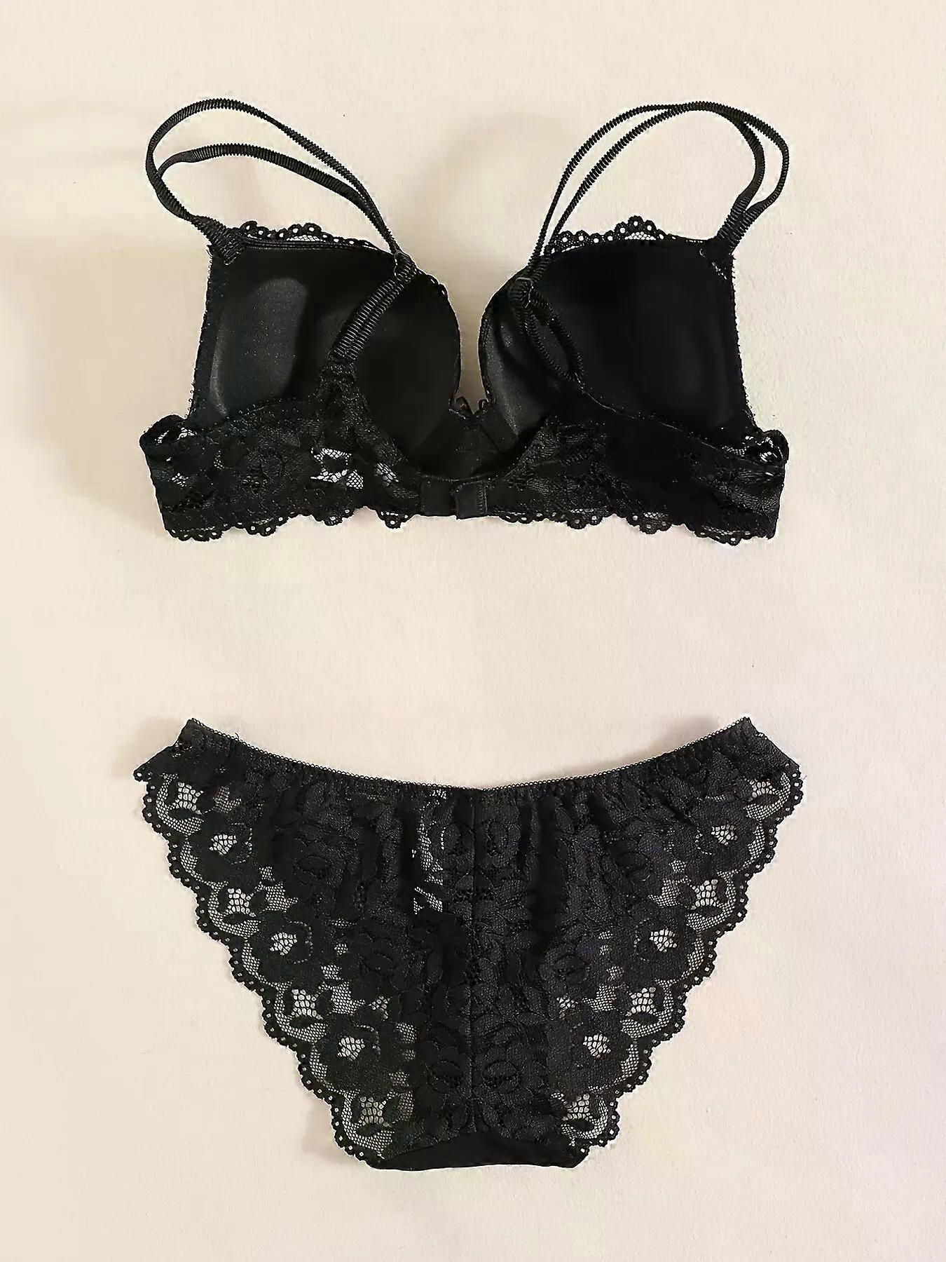 1 Set Elegant Lace Embroidery & Breathable Fabric Lingerie Set: Push-Up Bra, Drop Waist Sheer Panty - Ultimate Valentine's Day