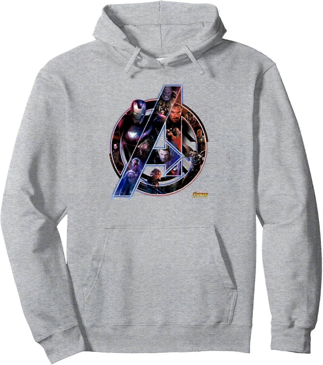 Men's Cotton Fleece Hoodie with Avengers A Logo Print Circular Emblem Featuring Iron Man Thor and Doctor Strange Character