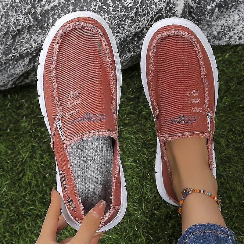 Women's Floral Daisy Embroidered Slip-On Loafers - Lightweight Washed Canvas with Anti-Slip PVC Sole, Frayed Trim Comfortable Sneakers for A