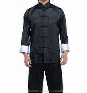 Charming Black Blue Chinese Men's Silk Satin Kung Fu Suit Pajamas Size: M -3XL