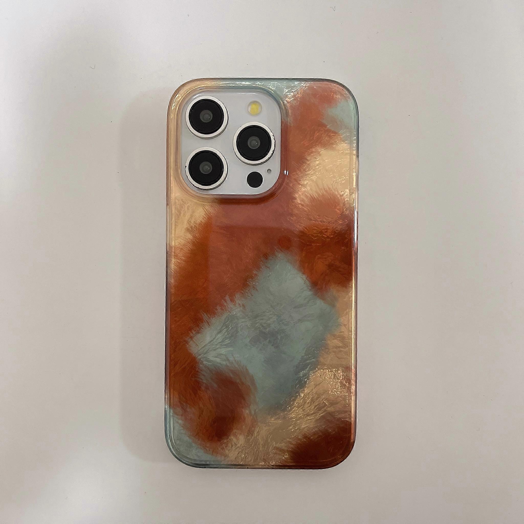Retro Glacier Texture Blue Orange Smudging Color Contrast Shiny Surface Dazzling Cover Case for iPhone 13 14 15 16 17 Pro Max