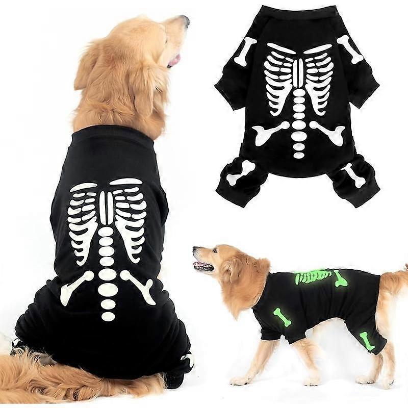 Halloween Dog Pajamas, Glow-in-The-Dark Skeleton Holiday Pet Costume, Warm, Soft & Stretchy Winter Clothes Sweater Jumpsuits with Sleeves fo