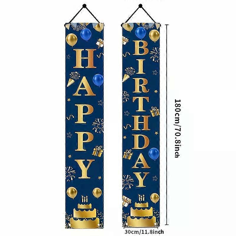 Black Gold Polyester Birthday Door Banner 1 Pair-Seasonal Party Decor Versatile Entryway Room Garden Indoor Outdoor Decorations