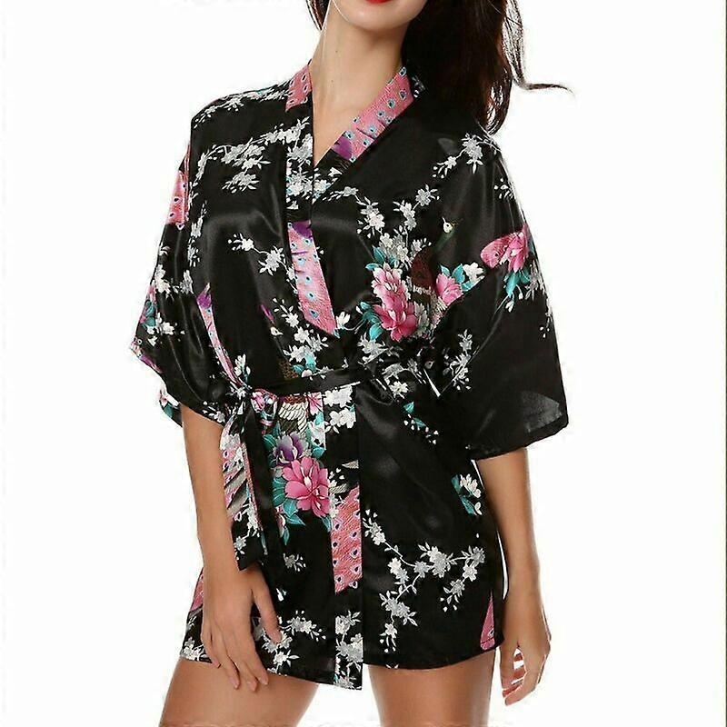 Sexy Silk Peacock Women Bridal Bridesmaid Kimono BathRobe Satin Night Dress Gown
