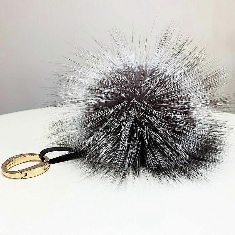 6" Big Real Silver Fox Fur Ball Keyring Car Bag Charm Pompom Coat Tassel Pendant