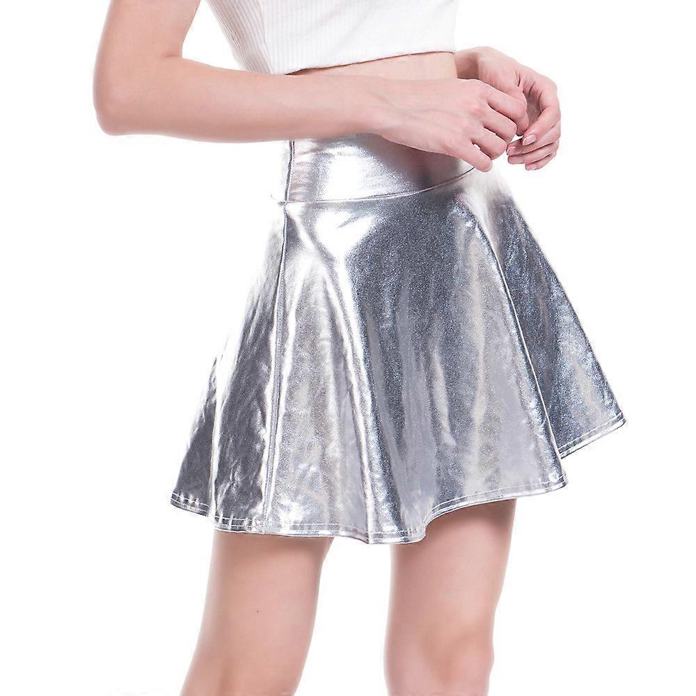 Lady Girl Metallic Shiny Short Mini Skirt Party Club PU Dance High Waist Fashion