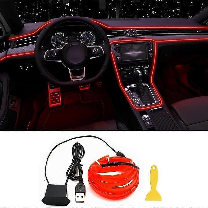 Wire Interior Car LED Strip Lights, 16.5FT USB Neon Glowing Strobing El Wire Strip with 6mm Sewing Edge, Ambient Lighting Kits for Car Insid