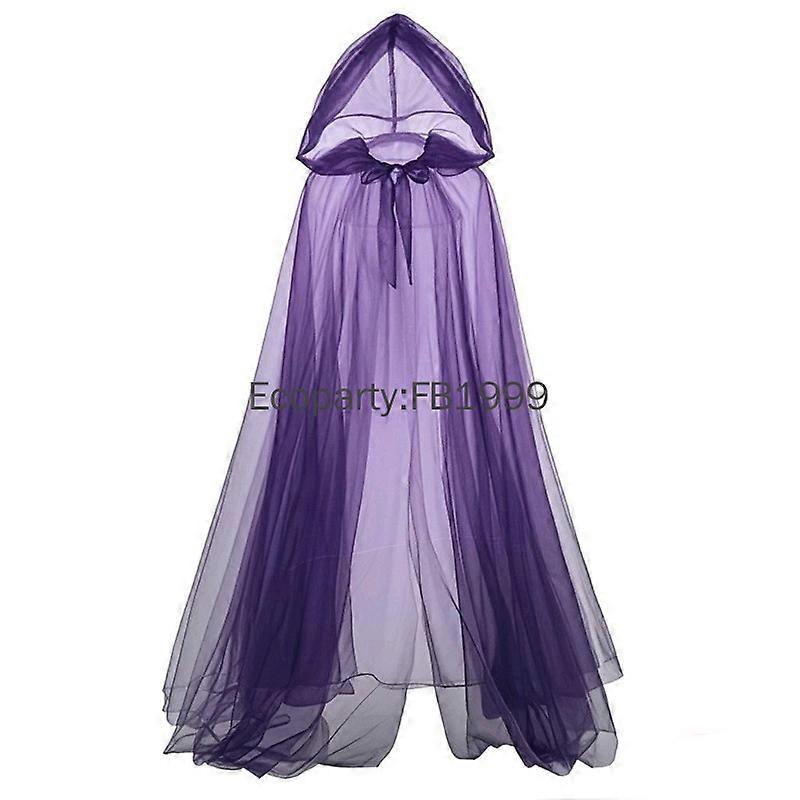 1pcs Halloween Witch Cloak for Women Black White Purple Hood Tulle Cape Cloak Wedding Bridals Floor Length Soft Mesh Cloaks