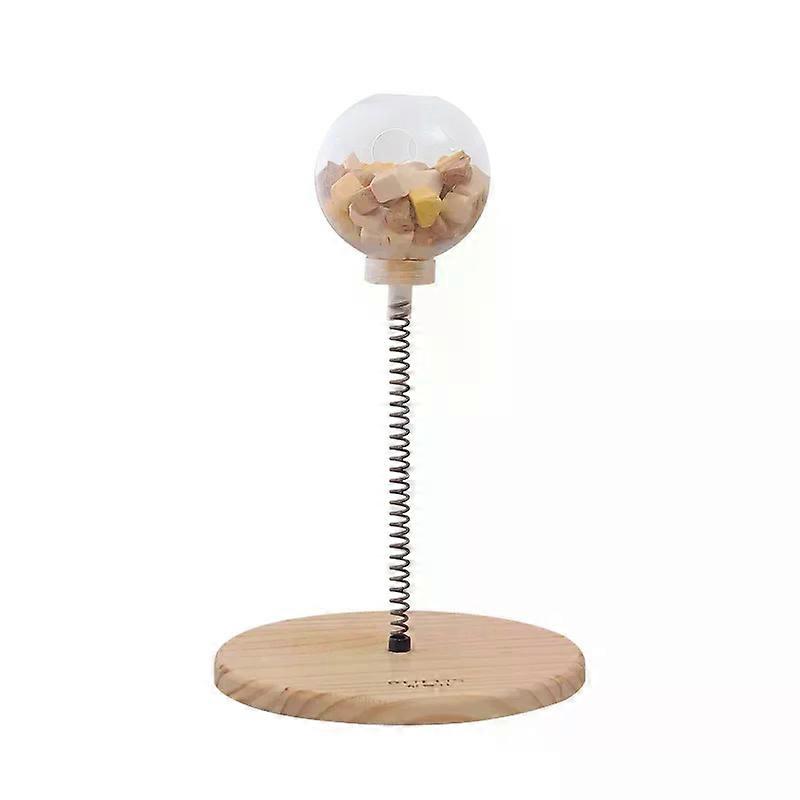 Solid Wood Cat Interactive Toy - Spring Turntable Tumbler Swing Funny Amusement Anti-Food Leakage Feeder for Kittens Accessories