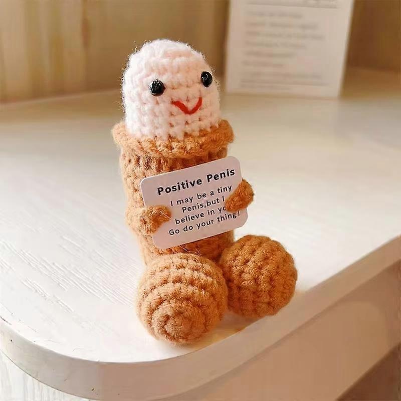 Funny Emotional Cute Crochet Doll, 1 Count Creative Knitted Decor with Positive Message Card, New Year Birthday Gift,Gifts Boyfriend,Fun Des
