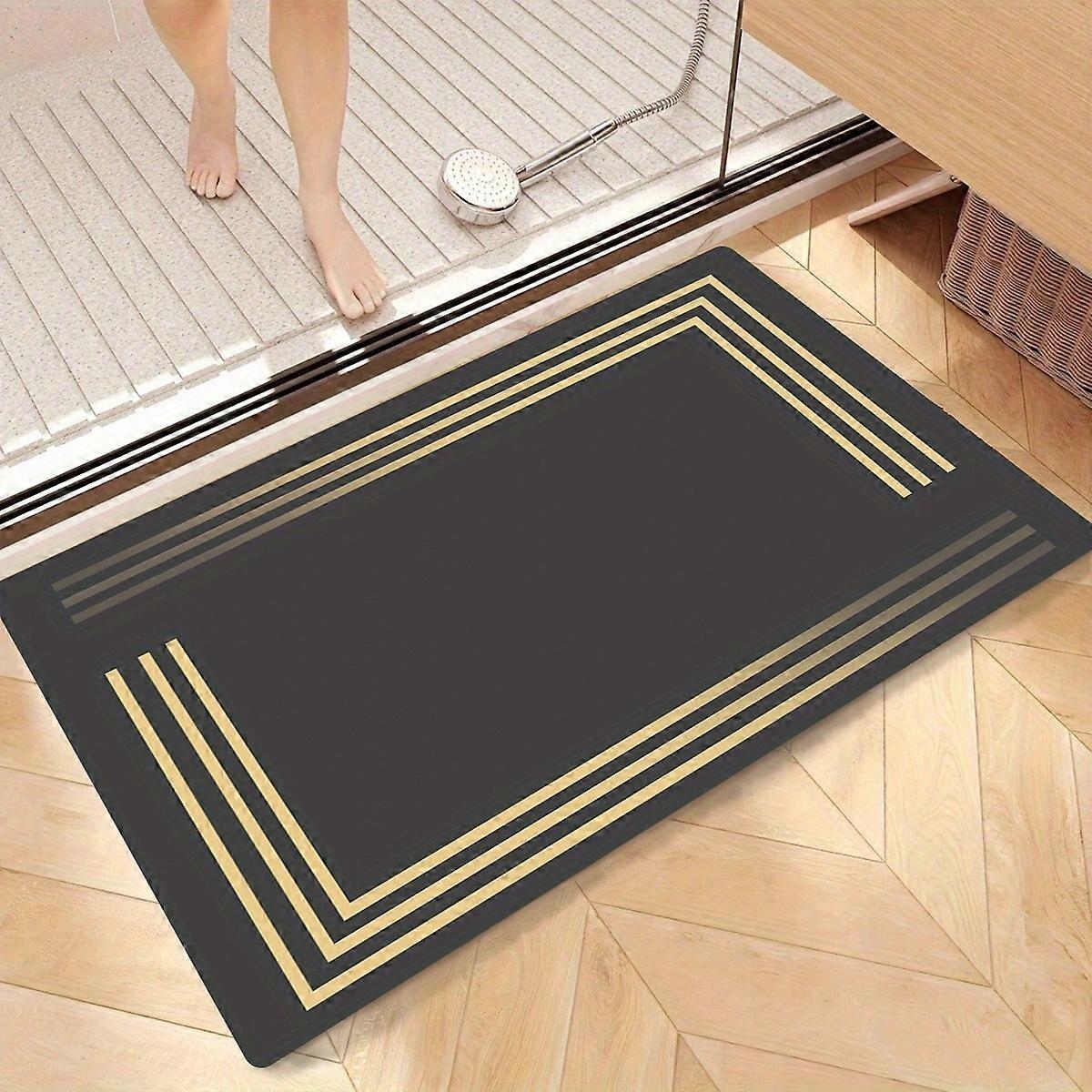 Luxurious thick anti-slip diatom mud floor mat - soft, water-absorbent, quick-drying, with elegant grey and gold striped design.