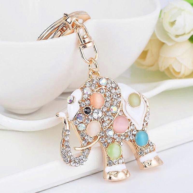 Multi-color Elephant Rainbow Opal Crystal Pendant Car Key Chain Women Key Chain