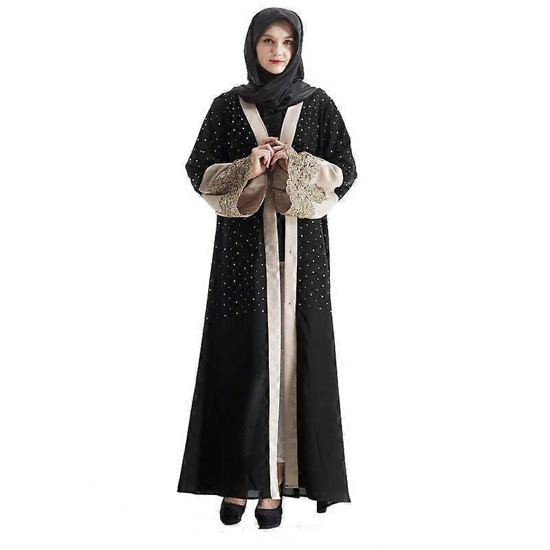 Women Open Abaya Maxi Dress Dubai Abaya Kimono Kaftan Black Islamic Lace Robe