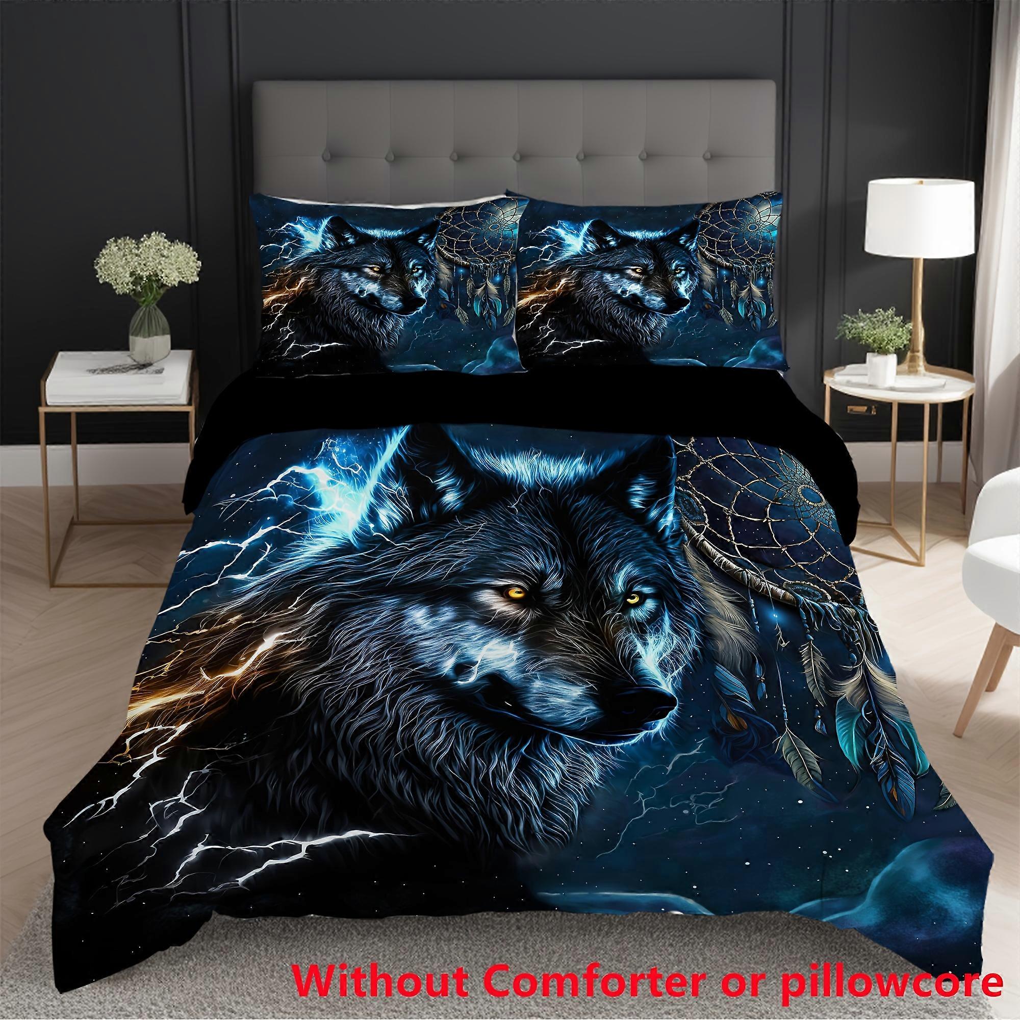 2/3pcs 3D Wolf Animal Dreamcatcher Print Duvet Cover Set (1 Duvet Cover + 1/2 Pillowcase, Without Core), Soft Comfortable