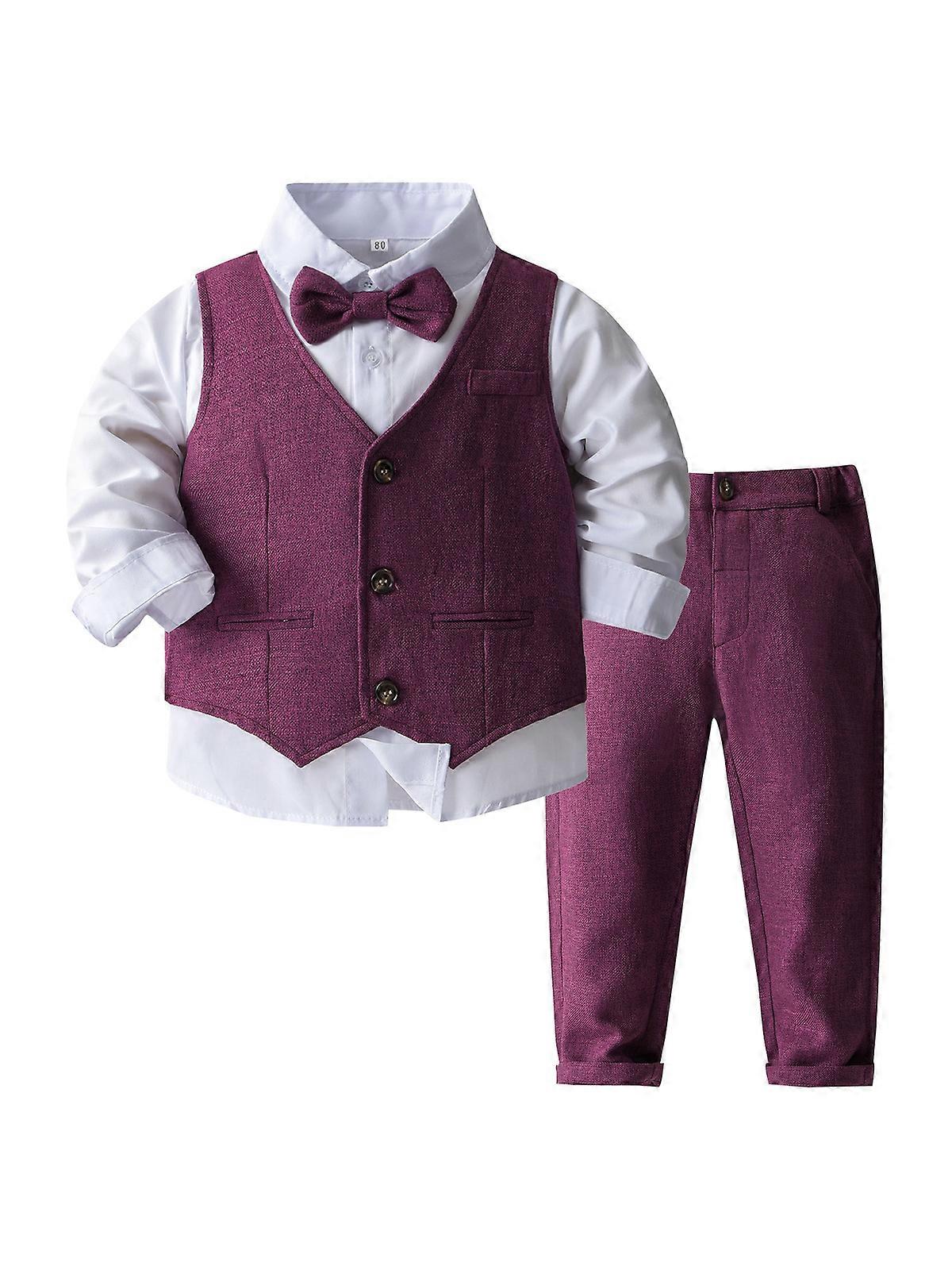 Baby Toddler Boys Gentleman Suit Bow Tie Dress Shirt Vest Pants Wedding Outfit