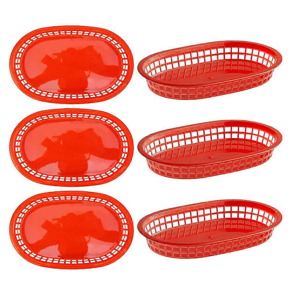 Fast Food Basket Serving Trays for Burgers Fries Sandwiches 6Pcs Red Set