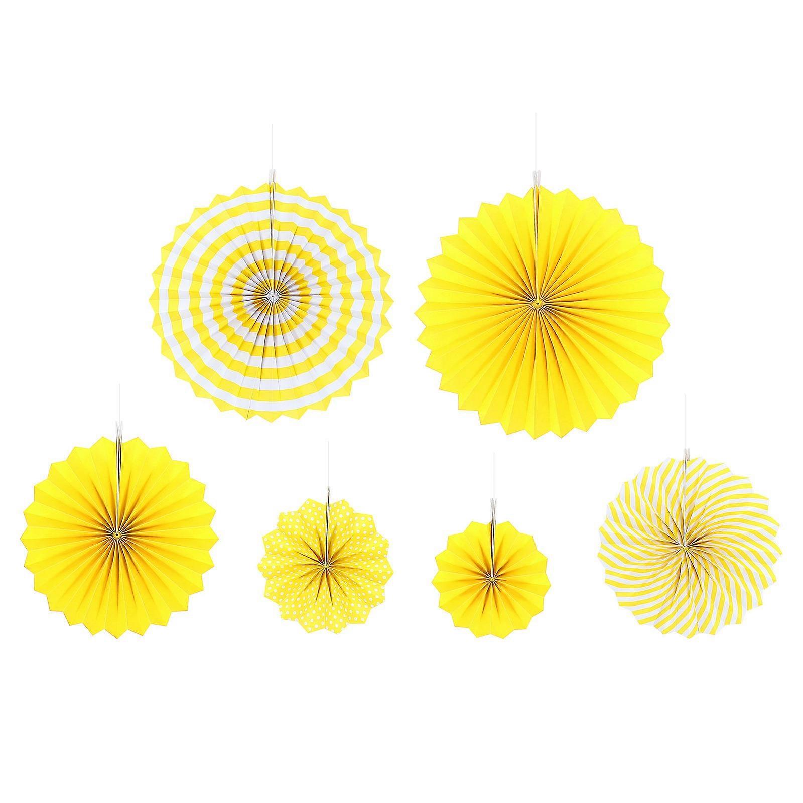 Folding Fan Paper Decoration for Wedding Use 6Pcs Yellow Fans