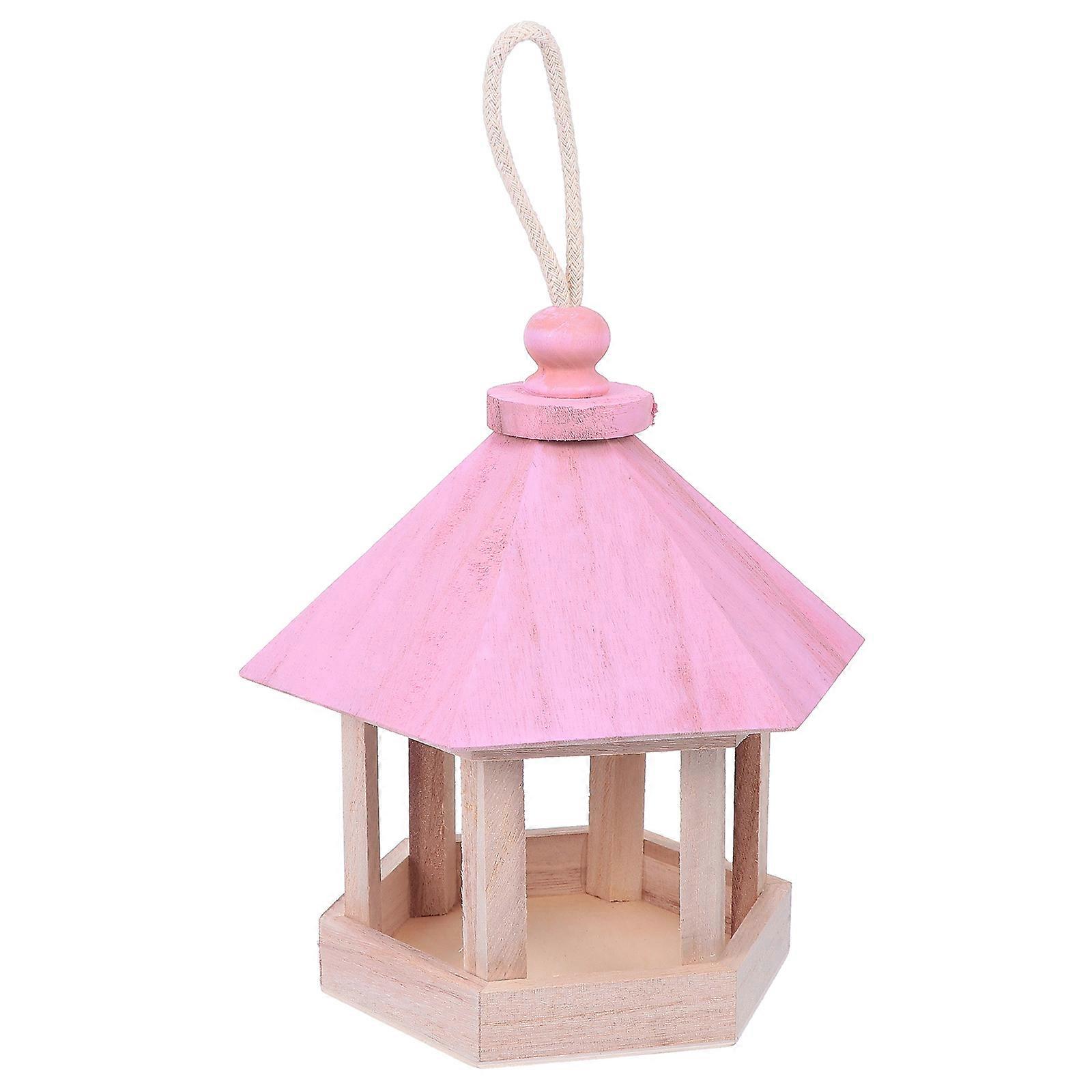 Pink Wooden Bird Feeding House for DIY Crafts with Thick Hanging Rope Synthetic Material