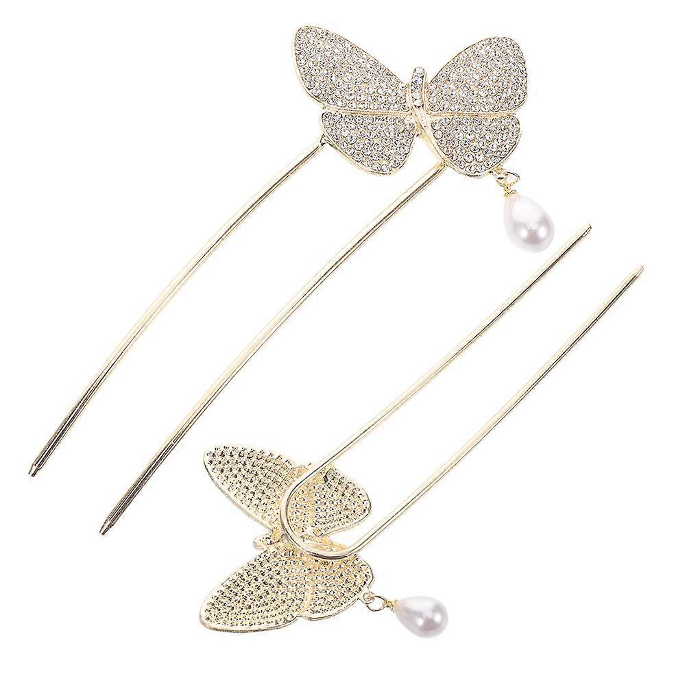 Decorative Hair Pins U Shaped Hair Fork for Styling 2Pcs in Gold