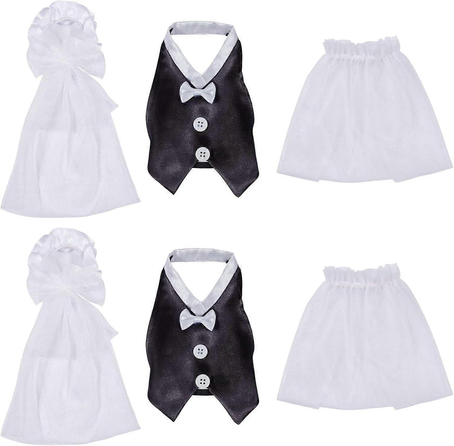 6pcs Bride and Groom Wine Bottle Covers Bridal Shower Gifts Wine Covers White Tulle Dress Black Tuxedo Wine Bottle Decorations for Wedding Bachelorett