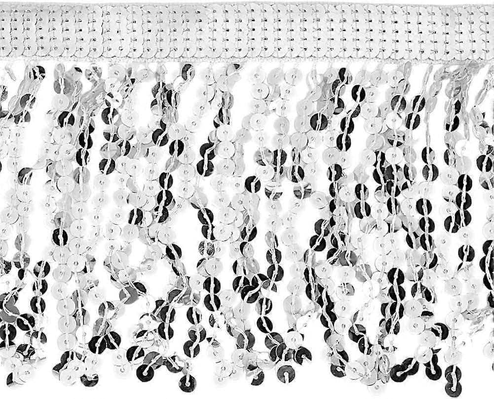 10 Yards Silver Sequins Fringe Trim 9.4inch Wide Sequin Tassel Sewing Trim for DIY Craft Latin Dress Clothing Embellishment Costumes Garment Curtain H