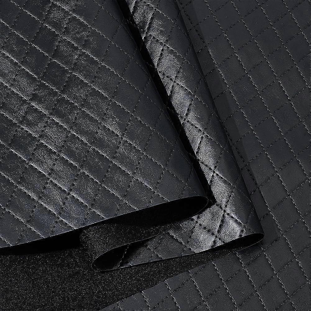 1.5yard Diamond Quilted Pattern Leather Fabric 11.8inch Wide Soft Imitation Leather Material for Handbags Sofa Accessories and Craft Supplies Black 0.