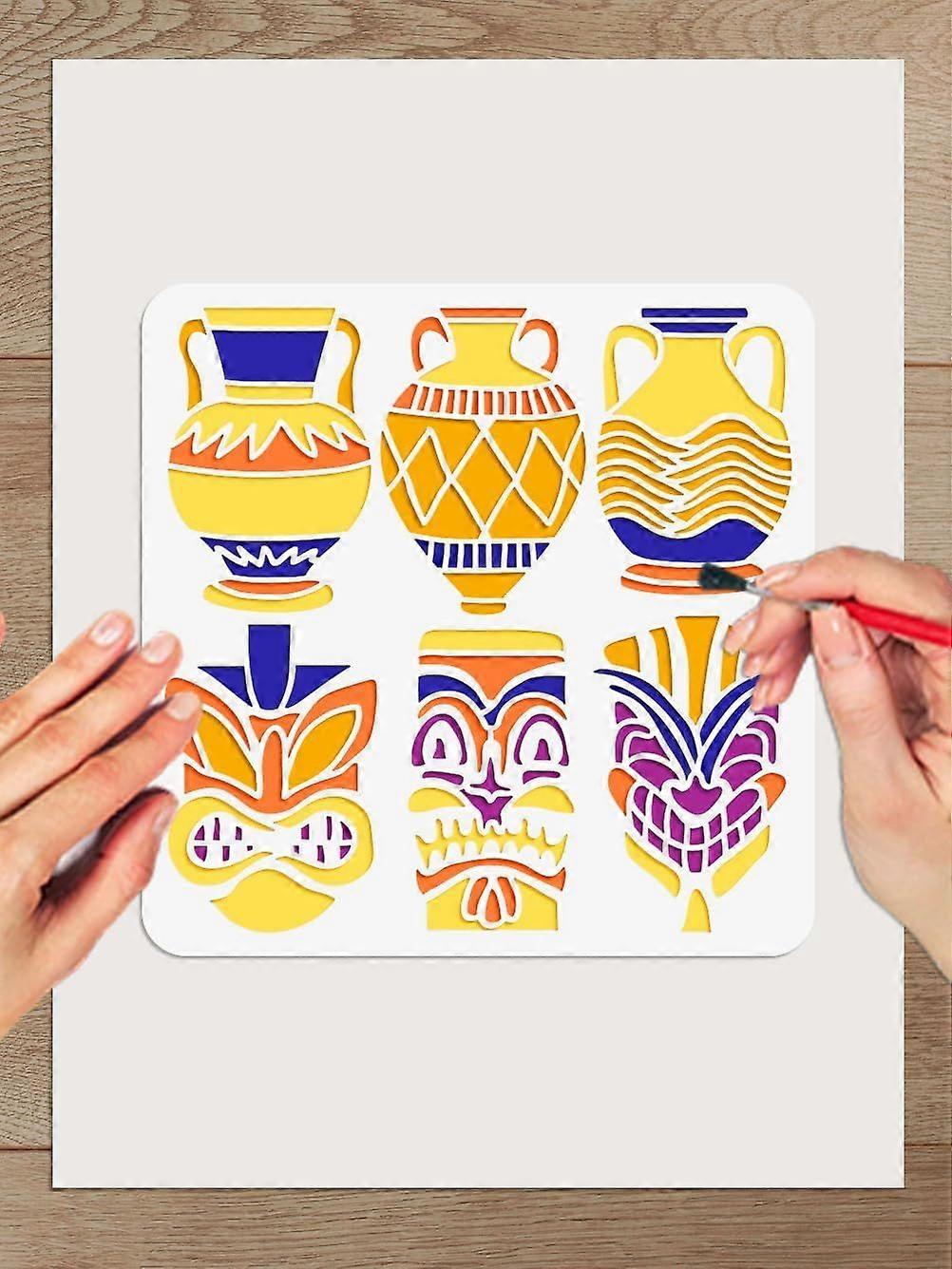 1 Pc African Tribal Jar Stencil Indian Pattern Theme PET Hollow Out Drawing Painting Stencils for Greeting Card DIY Scrapbook Photo Album Painting on