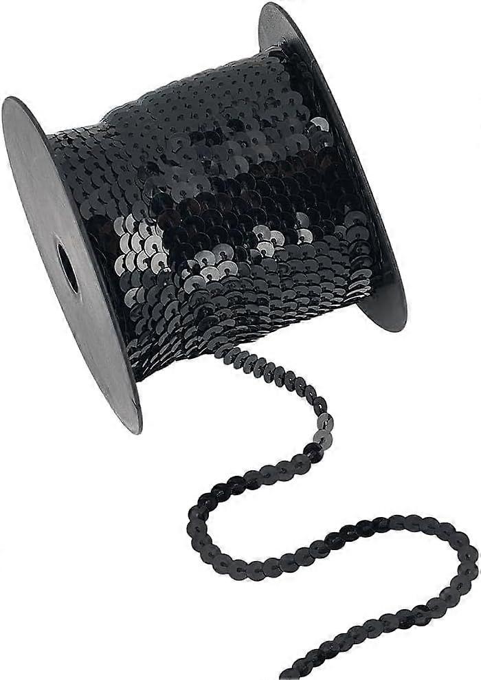 100 Yards 6MM Black Sequin Ribbon Trim Sequin String Bulk PVC Flat Shiny Glitter Spangle Paillette Sequins Trim for Sewing Dress Costume DIY Crafts Pa