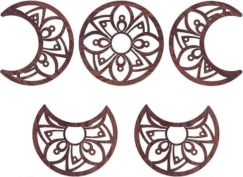 5Pcs Moon Phase Wall Decor Wood Moon Phase Wall Art Decor for Living Room Flower Moon Phase Wall Hanging Bedroom Decor Home Wall Hanging Decor with Fl