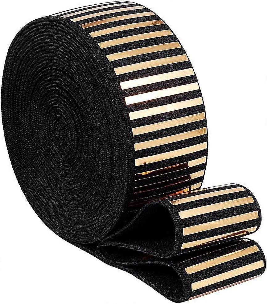 5 Yards Black Knitted Elasticated Tape with Gold Laser Pieces 1.54 Inch Sewing Elastic Band Polyester Stretch Strap for Sewing Waistband Wig and DIY C