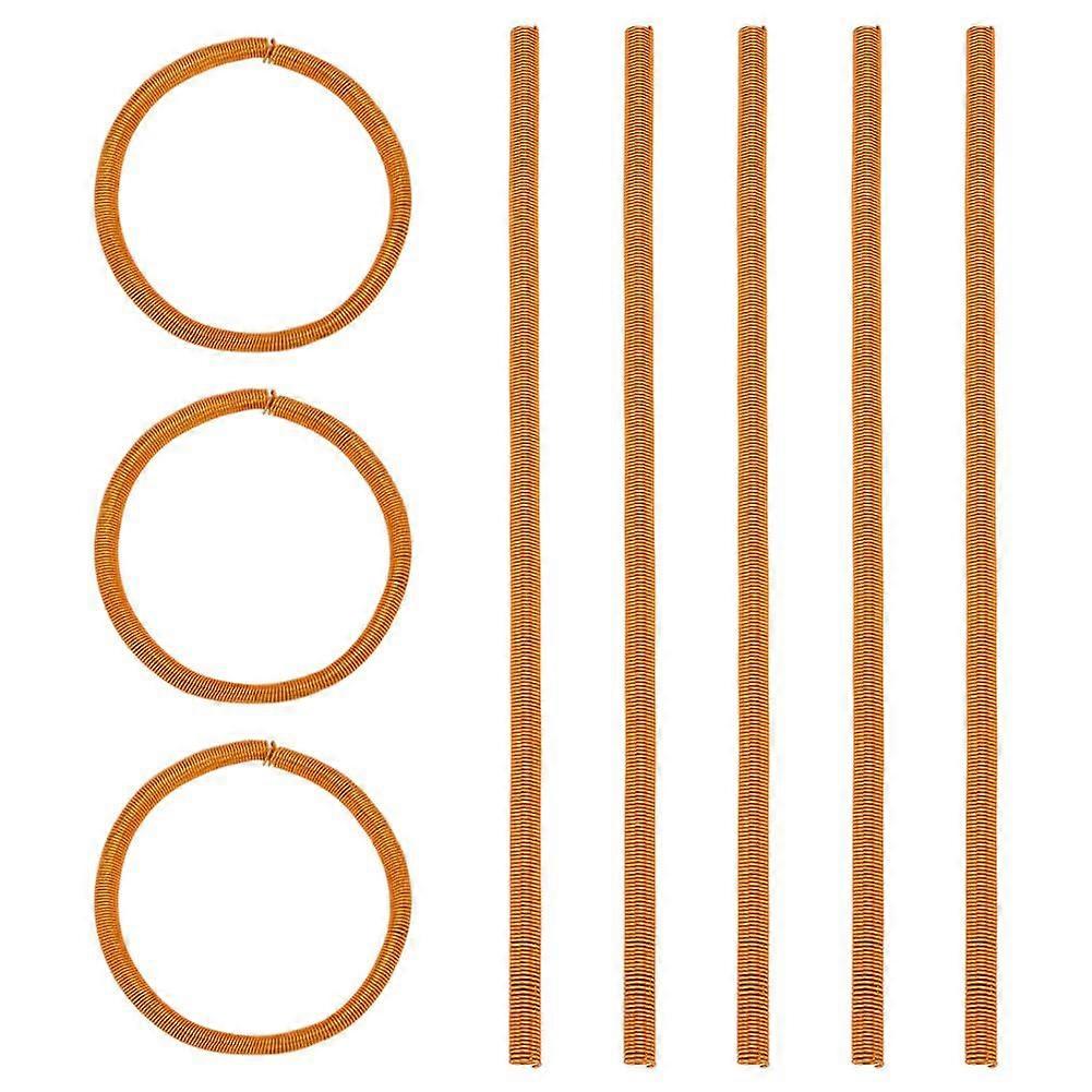Value Pack: package includes 8pcs golden french gimp wire 8mm(1/4 inch) in diameter 31cm(12.2 inch)/pc 248cm(97.6 inch) in total length. Classic golden makes it easy match other accessory no limitation for your creation Flexible Coil Wire: the metallic spring wire is made of aluminum glossy not easy to fade has good ductility is not easy to rust or break durable easy to cut with ordinary scissors or jewelry wire cutters a good choice for hand creation Easy to Use: the french bullion wire is designed into a round shape with good elasticity simple to shape easy to operate can be threaded on the place you want to decorate ideal for beginners and experienced jewelers alike Multiple Usages: the metallic spiral wire has a beautiful luster and shiny appearance can be used for embroidery project clothes decoration jewelry making DIY crafts making suitable for professional use or home personal DIY use Wide Applications: the craft wire can be applied for making delicate necklaces bracelets earring charms shoe surfaces pendants cartoon character hair accessories garment design brooch badge crafts wire bike making and more