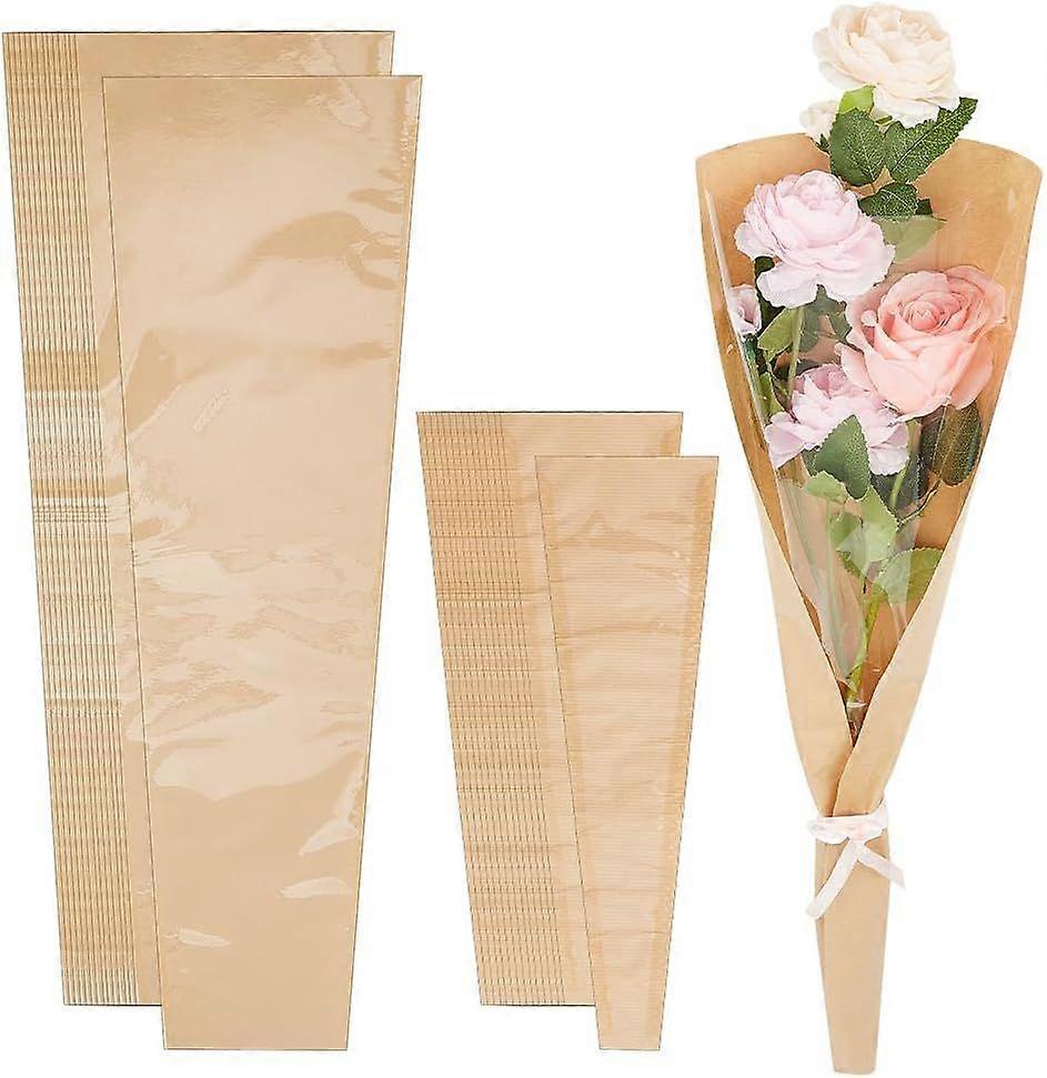 100 Pcs Flower Wrapping Paper 2 Style Kraft Paper Gift Bags Single Flower Bouquet Wrapping Paper for Bridal Shower Wedding Gift Giving Decoration