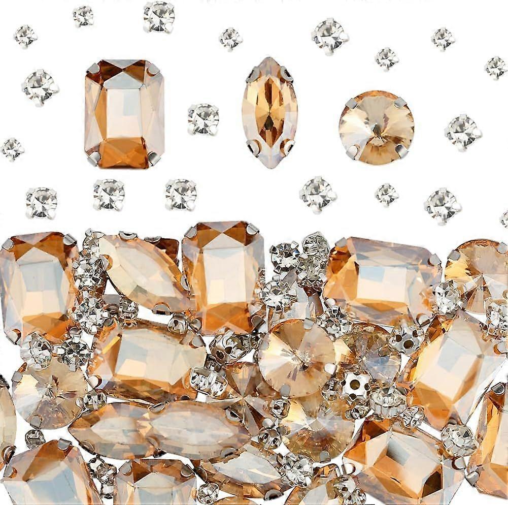 210Pcs 5 Styles Sew on Rhinestones Mix Shapes Faceted Glass Rhinestones Sew on Gems with Metal Back Prong Setting for Crafts Clothes Dresses Shoes Bel