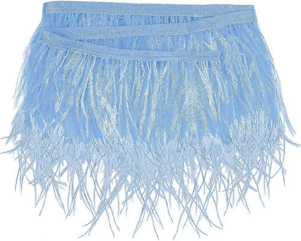2.2 Yards Light Blue Ostrich Feather Trim 3.9-6.7 Inch Width Fringe Trim Sewing Feather Trim Ribbon Feathers Sewing Craft Decor for DIY Sewing Clothin