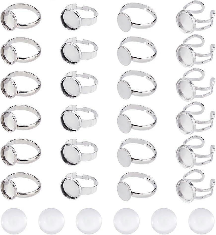 32pcs 4 Styles Adjustable Blank Rings Stainless Steel Open Cuff Ring Finger Ring Settings 12mm Ring Blank Base Pad with Glass Cabochons for DIY Crafts