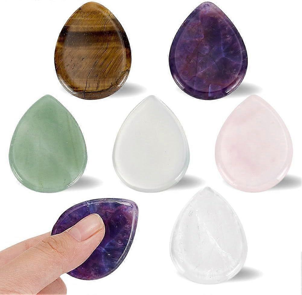 6Pcs Pocket Palm Stones 6 Styles Teardrop Thumb Stone 1.38x1.77 Stones Opalite Natural Rose Quartz Tiger Eye Amethyst Polished Stone Valentine's Day G