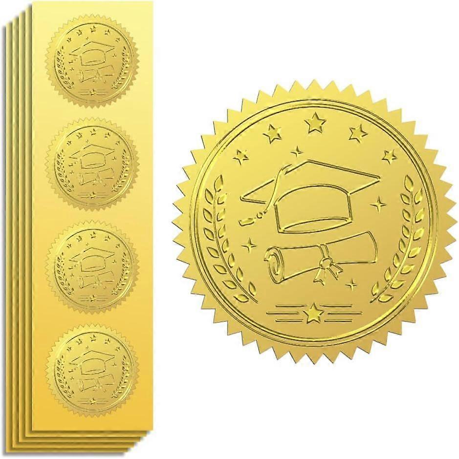 Gold Foil Sticker Seal Embossed Bachelor's Hat and Wheat 2 Inch 100Pcs Self Adhesive Gold Around Embossing Medal Sticker for Certificate Paper Student