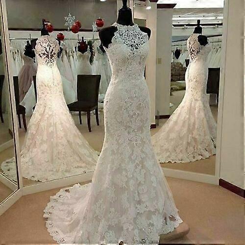 High Neck Wedding Dresses Mermaid Bridal Gowns Full Lace Sleeveless Sweep Train