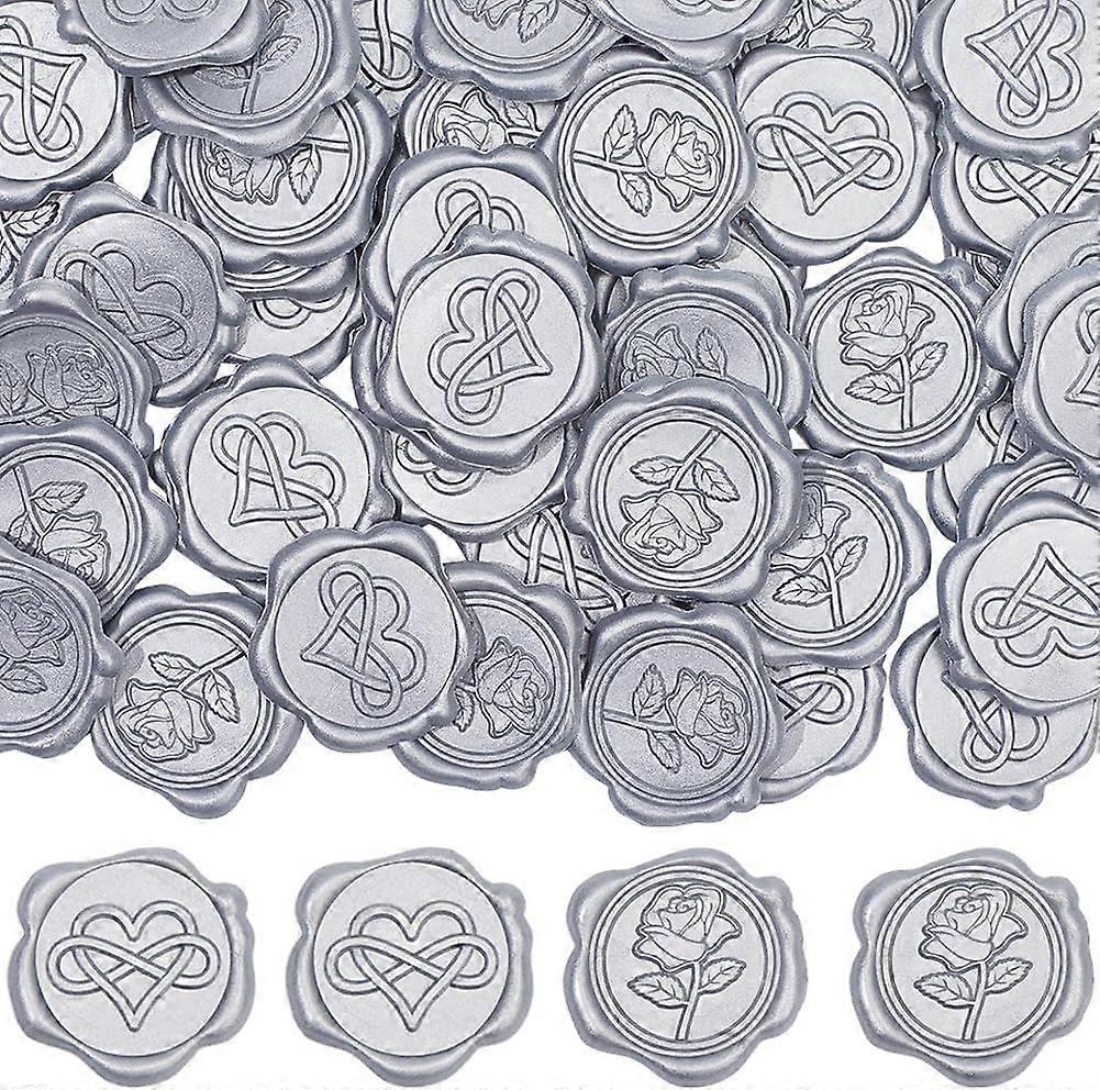 50Pcs Silver Wax Seal Stickers 2 Style Heart Rose Wedding Invitations Envelope Vintage Sealing Label Self Adhesive for Gift Wrapping Birthday Greeting