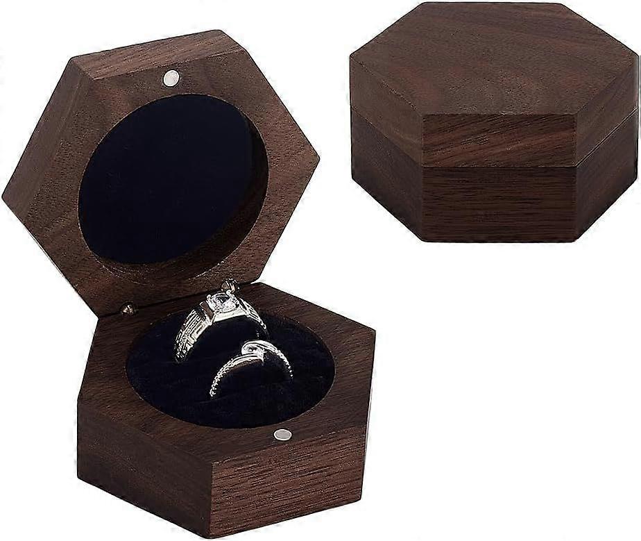 Wooden Wedding Ring Box 3 Slots Ring Storage Box Walnut Wood Jewelry Holder Ring Bearer Boxes for Wedding Proposal Ceremony Engagement Anniversary Bir