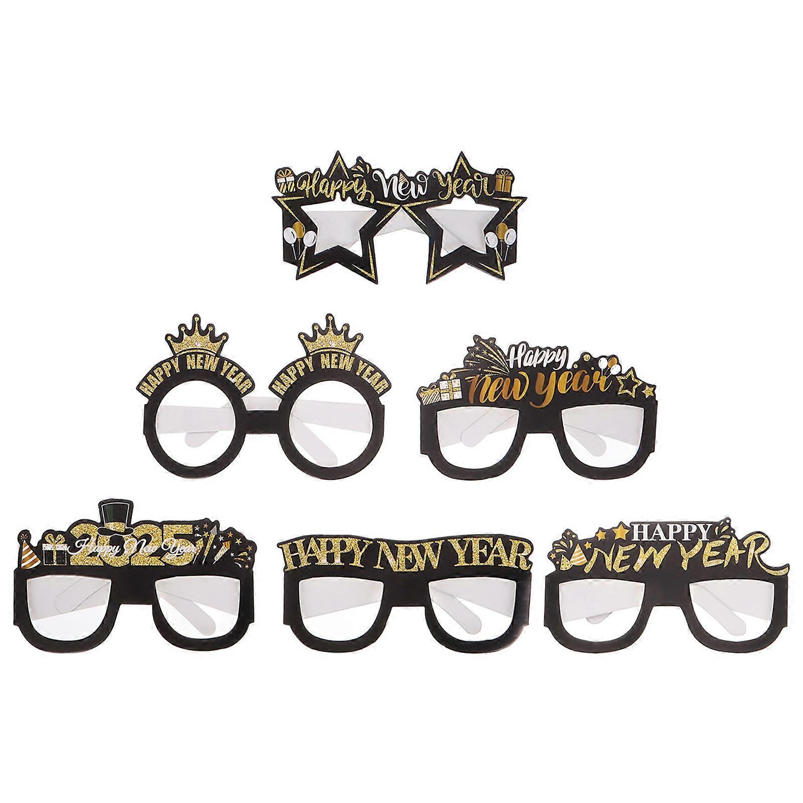 Happy New Year Glitter Eyewear 2025 Theme Party Decorations Multi Color Paper 6Pcs