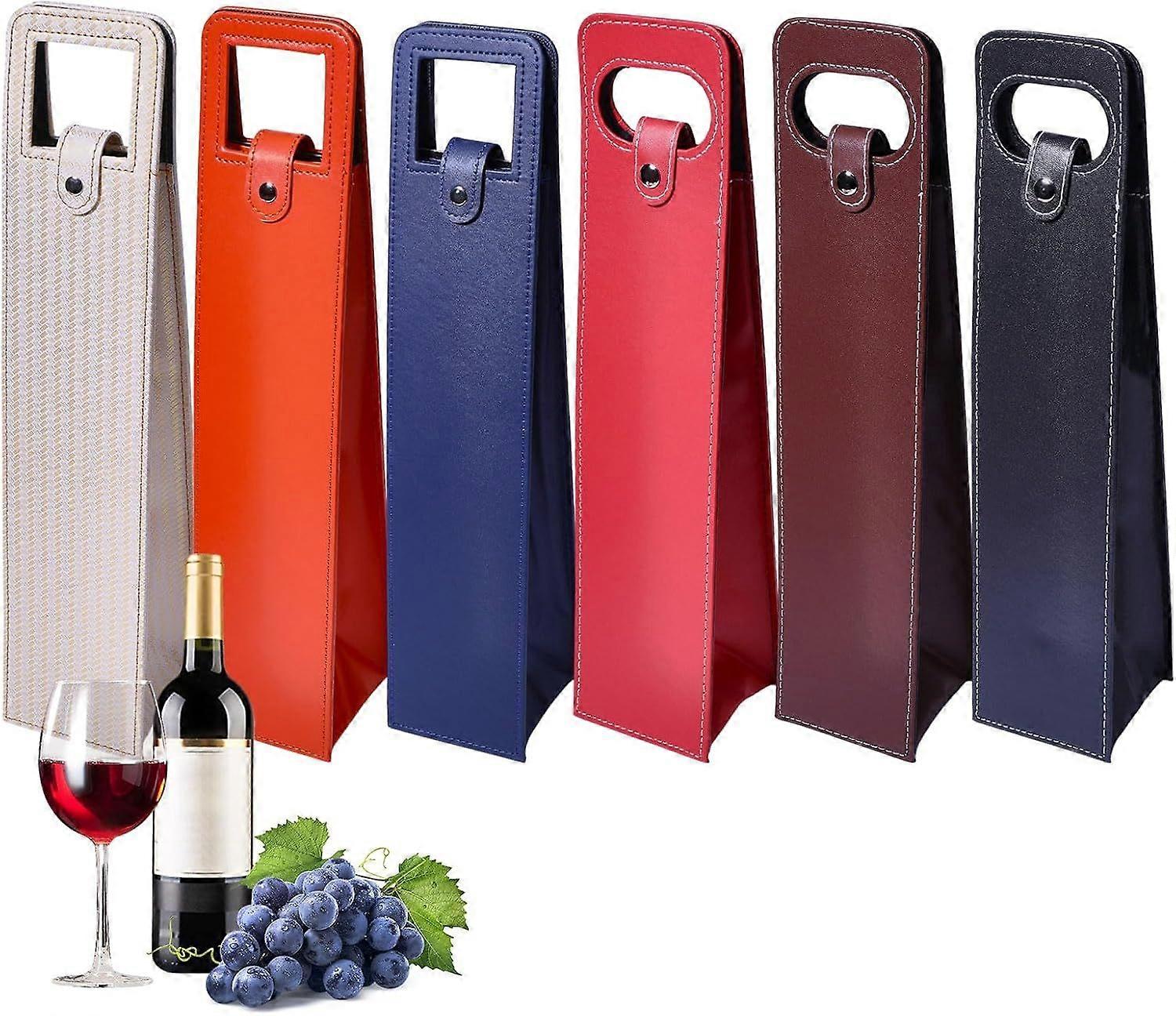 6 Pcs 6 Style Wine Tote Bag Leather Wine Tote Bag Leather Wine Carrier Wine Bottle Gift Bags for Weddings Birthday Parties Festivals