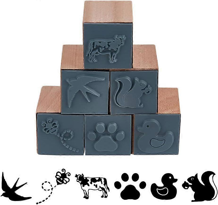6pcs 6 Styles Wooden Rubber Stamps - Paw Print Squirrel Cattle Duck Swallow Bees - Natural Wood Stamp - Small Mini Stamp for Card Making DIY Craft Let