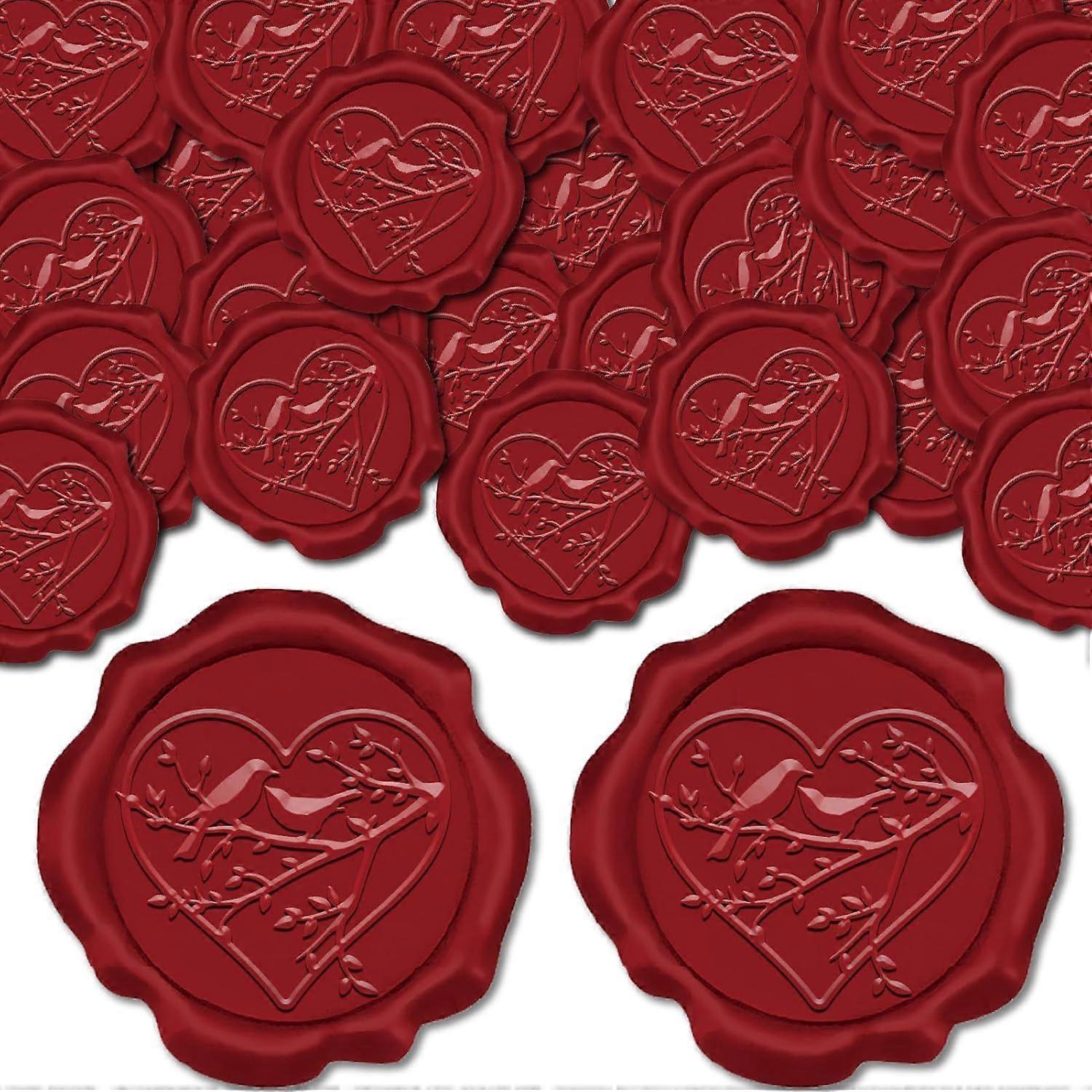 Heart Wax Seal Stickers 50Pcs 30mm Self-Adhesive Wax Stickers Red Vintage Wax Sealing Sticker Wedding Invitation Envelope Seals Stickers for Christmas