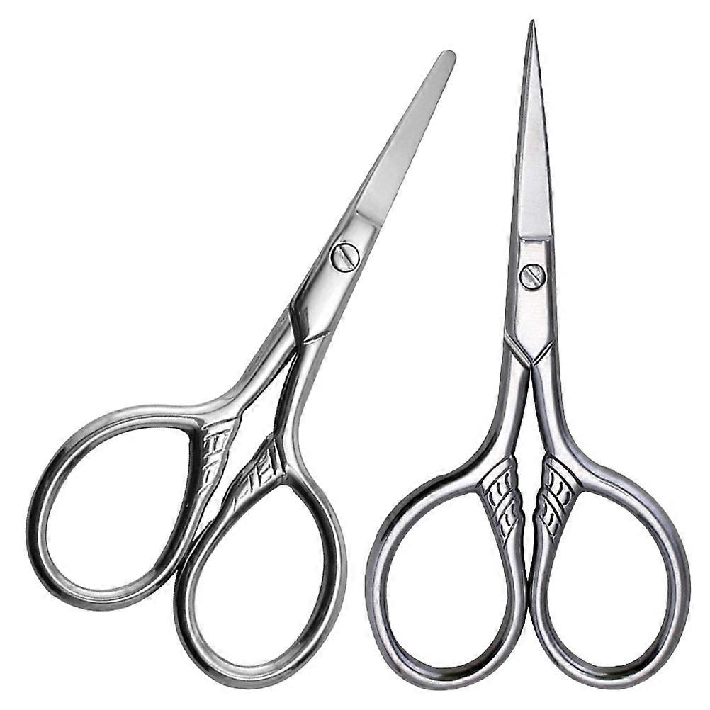 Silver Eyebrow Scissors Stainless Steel for Grooming 2Pcs Small Scissor Set