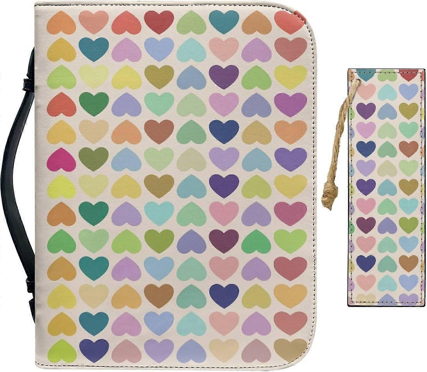 Leather Bible Cover with Bookmark for Colorful Hearts Church Bible Case Small Waterproofing Bag Carrying Book Cover Zipper Protective Bag Carrying Cas