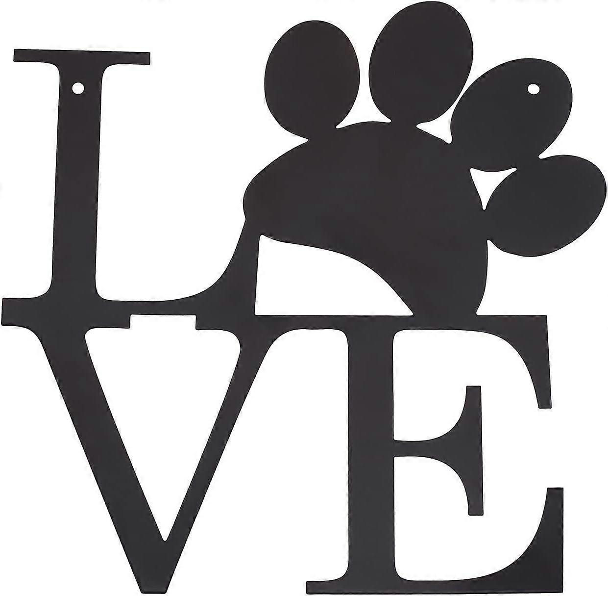 Love with Paw Print Wall Decor 11x11Inch Dog Paw Love Wall Decor Black Laser Cut Sign Metal Valentines Day Decor for Wall Farmhouse Kitchen Valentines