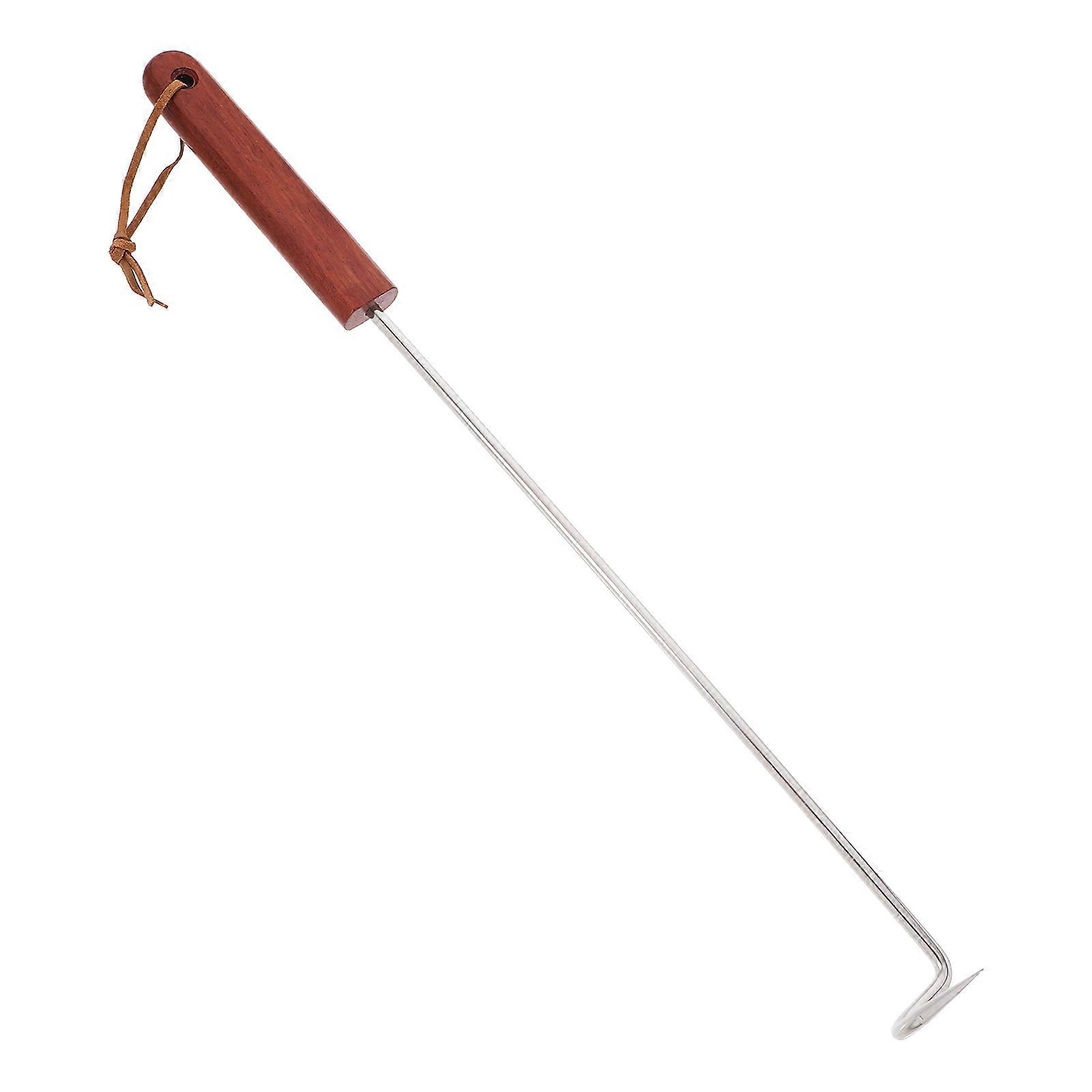 Meat Hook Flipper with Wooden Handle Made of Stainless Steel for Bbq